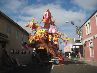 Discarded Junkanoo floats and costumes were strewn all over the streets. We